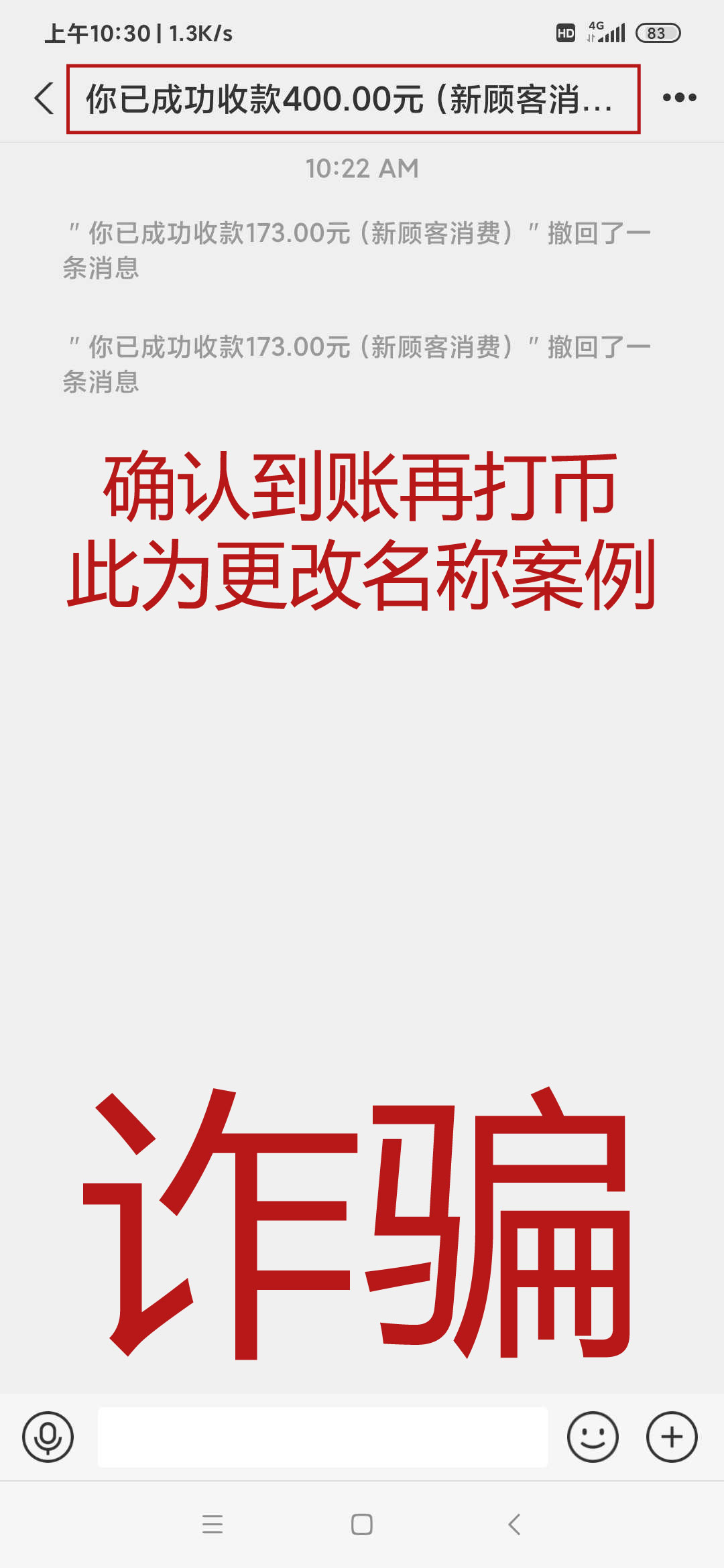 收到对方打款通知后,务必点击进入钱包查看金额是否一致,确认无误再进行打币。有些案例导致卖家误以为已到帐,从而打币失去资产;有的则是假装付款异常,诱导卖家私下添加好友。