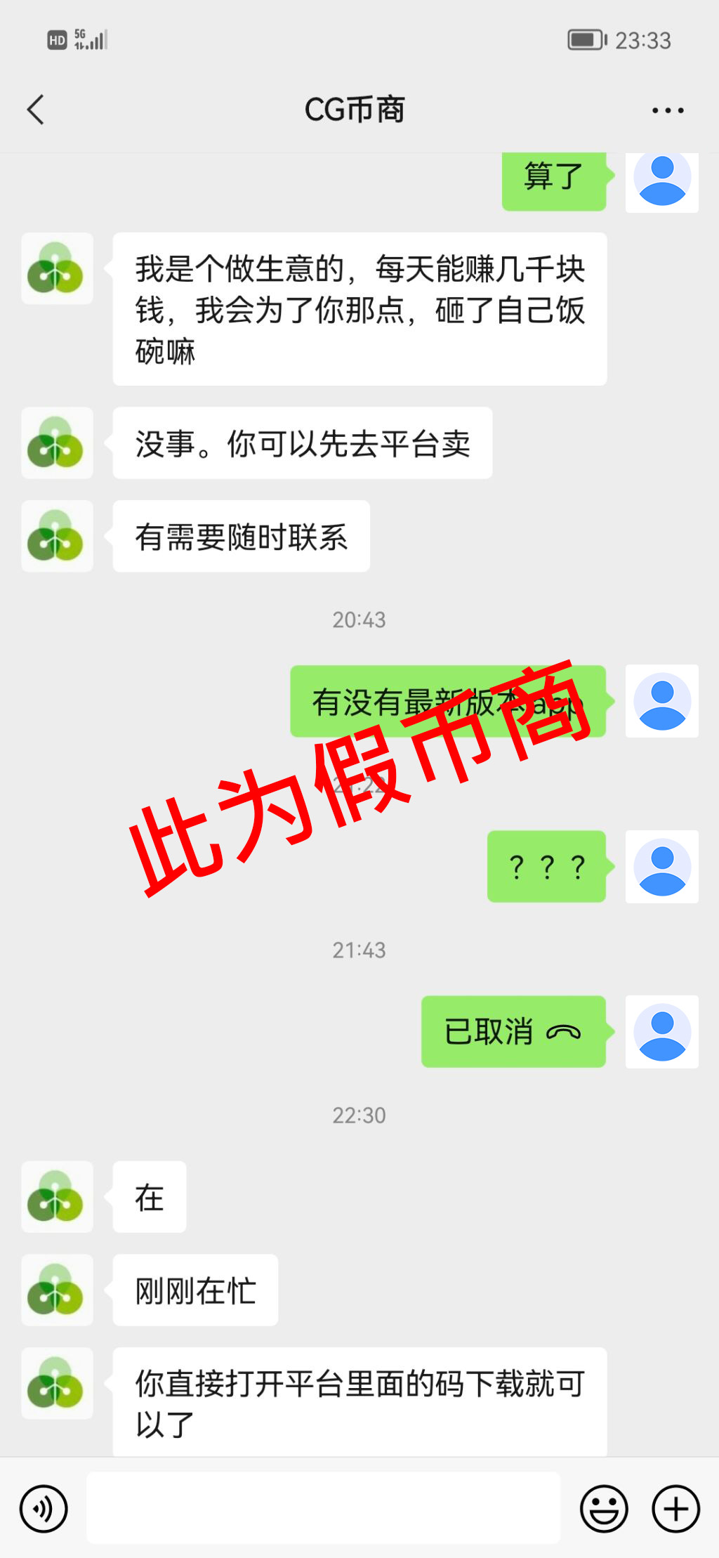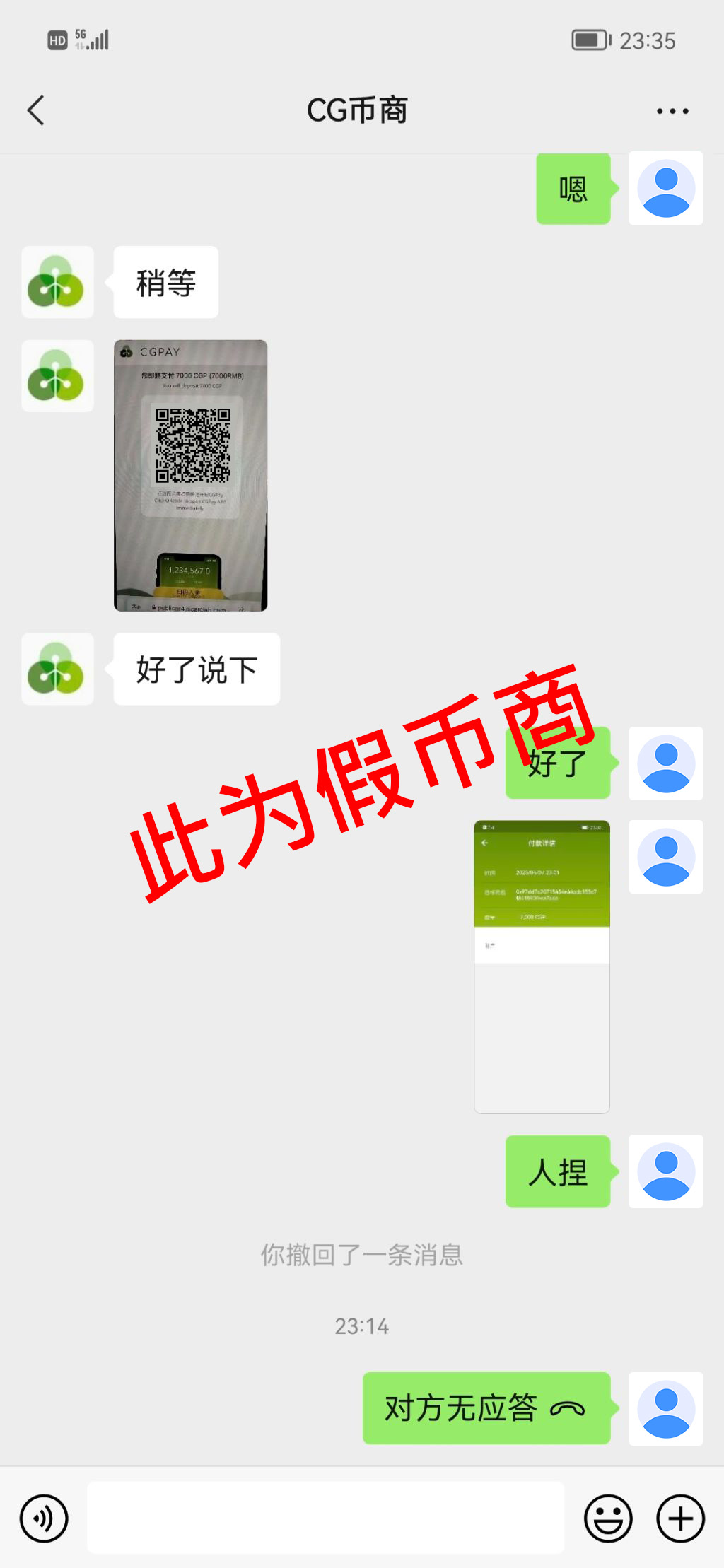骗子先在CGPay钱包内大量下订单后又取消订单,就是为了取得卖家的微信/支付宝/QQ/邮箱账号 ,然后再添加卖家好友假冒成CGPay的币商,骗子会以币商的身份来跟卖家收币,这是为了诱导会员进行扫码上分,导致会员资金损失。