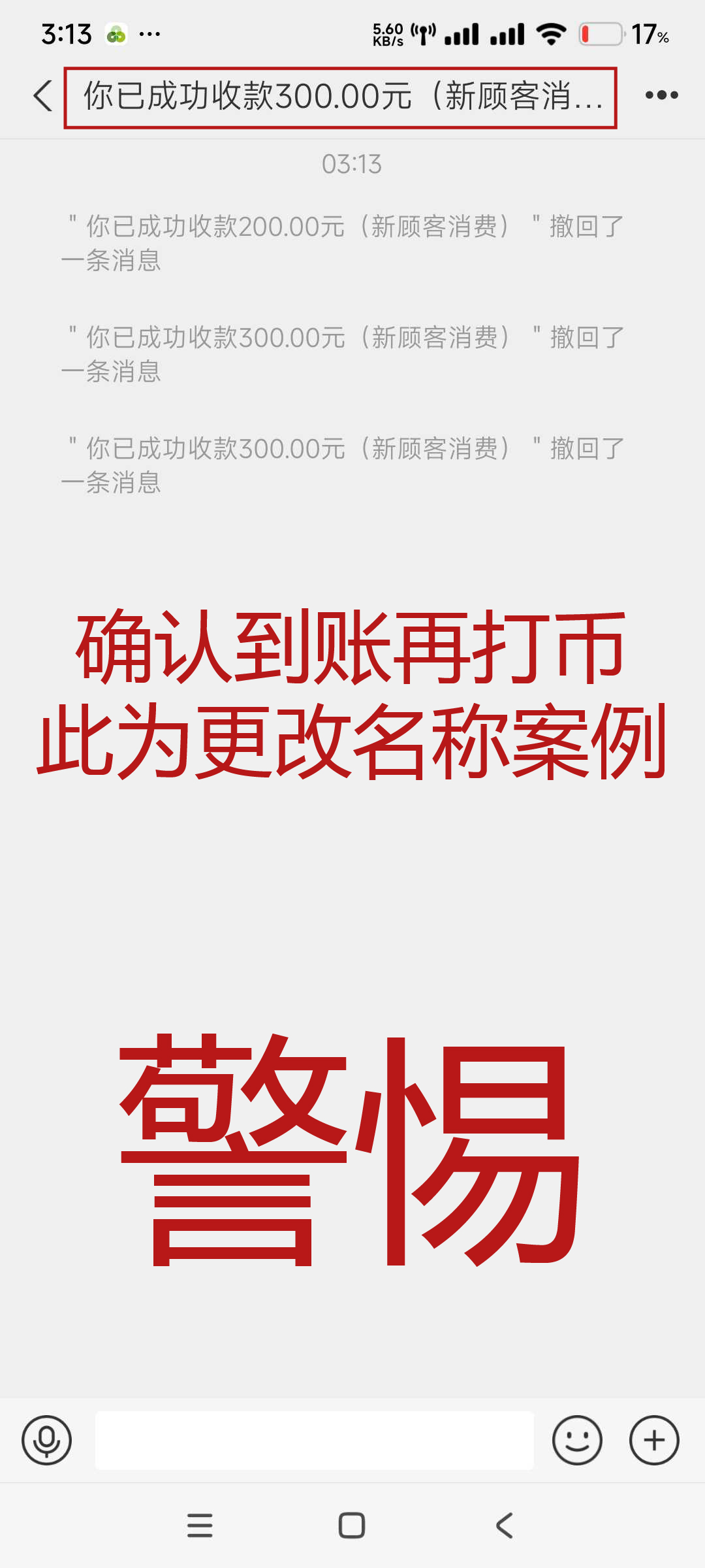常见但最容易被骗的手法之一就是 “0.01骗术“。什么是 “0.01骗术”?此类手法利用会员急于完成交易的心理控制您。若您未仔细确认款项是否到账,仅凭通知就打币给对方,此时已经来不及了——对方早已完成 “上分”。