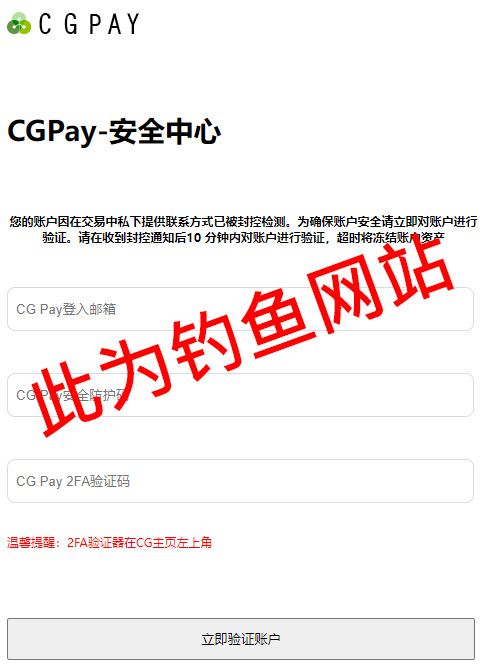 钓鱼网站指的是那些用来欺骗会员的虚假网站,企图获取会员的的账号、密码、安全防护码、CG Auth验证器(2FA验证)、授权等信息。 常出现于钓鱼邮件中的不明链接,欲了解详情请至【钓鱼邮件及链接诈骗案例】。