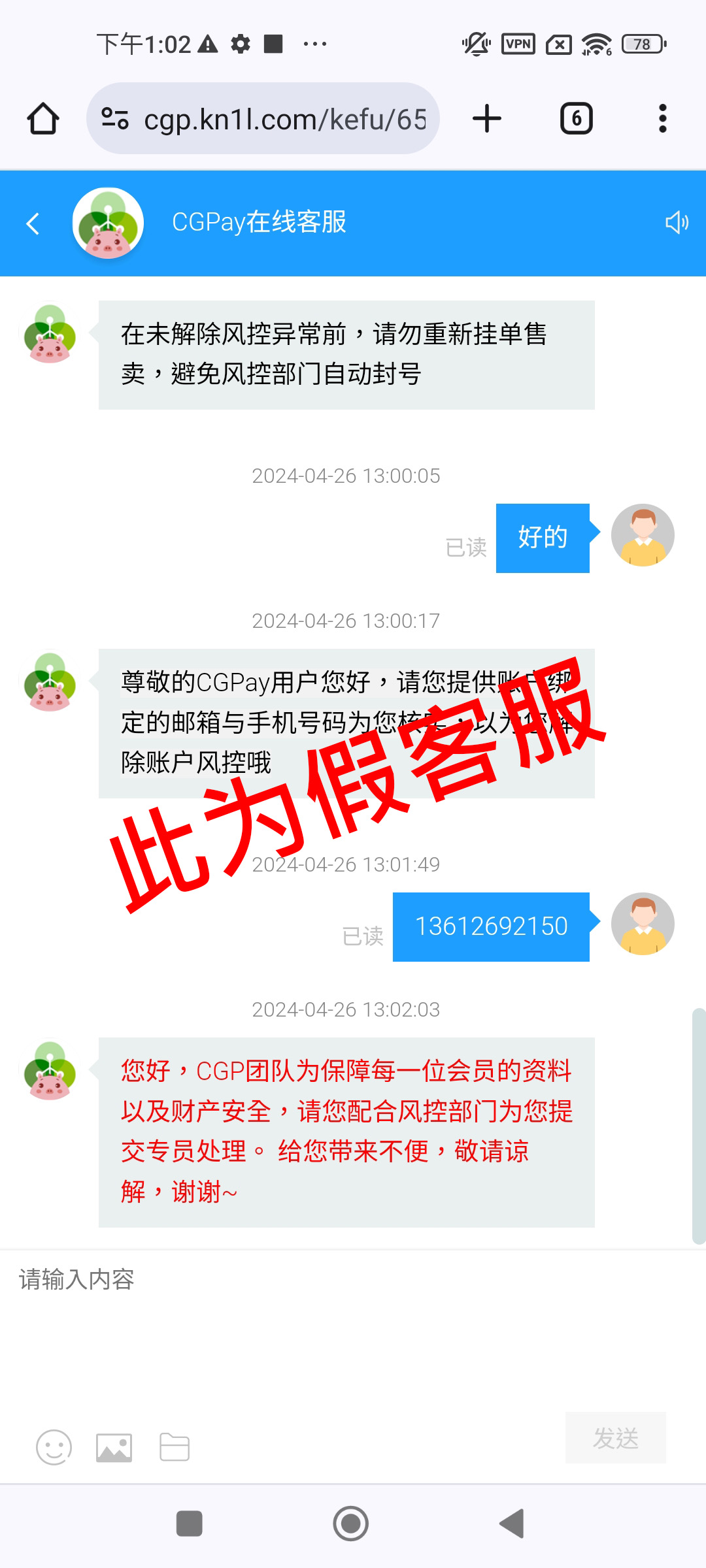 CGPay钱包的在线客服是不会透过假短信内的链接,跟会员进行任何对话,更不会要求您为了解除风控提供个人资讯,包含账号、密码、防护安全码等等。